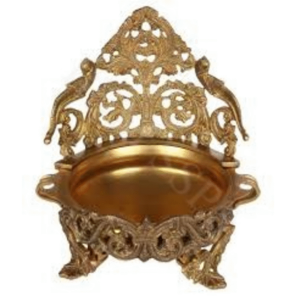 This is a large cast brass cooking pot from Southern India known locally as an uruli. Pots were placed directly on a fire and large meals were prepared for special events. Nowadays because of its beautiful form it is used as a decorative element in households ?it occupies a place of interest in the living room or at the entrance to a home & is filled with fragrant, colourful fresh flowers or is filled with water in which floating candles or flowers are dispersed aesthetically.