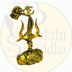 Bring the blessings of Lord Shiva into your home with this pure brass antique Trishul and Damru idol, featuring detailed craftsmanship and an Om symbol. Ideal for Maha Shivratri, pooja rooms, and spiritual gifting, it symbolizes divine power and balance.