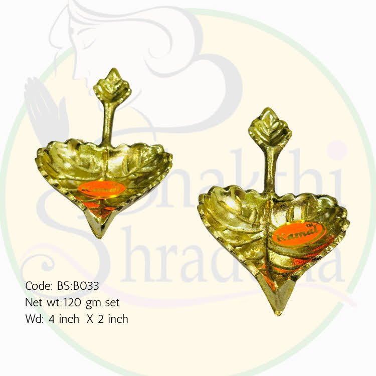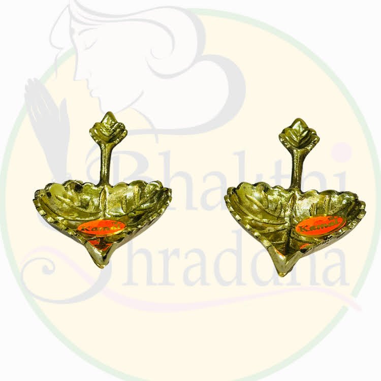 Enhance your spiritual ambiance with this pair of handcrafted brass paan leaf patra, featuring a radiant antique golden polish. Perfect for daily worship, festivals, and gifting, these diyas combine traditional design with lasting craftsmanship.