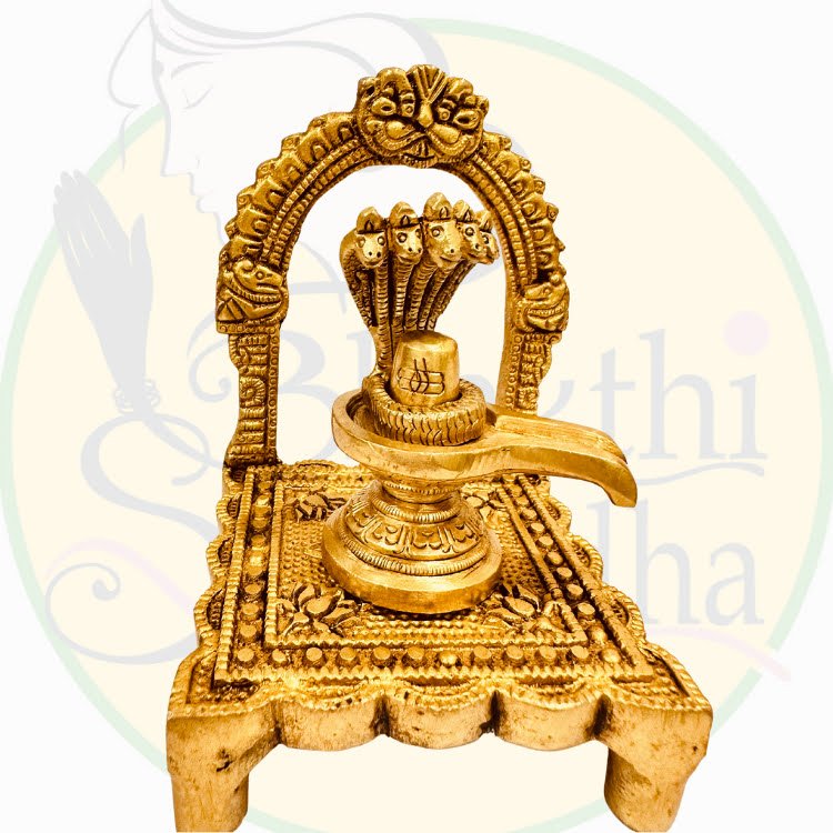 Invoke divine energy and blessings with this handcrafted brass Shiva Lingam, beautifully designed with a five-hooded Naga (serpent) protector and intricate antique detailing. Symbolizing Lord Shiva’s eternal power, purity, and creation, this sacred piece radiates spiritual strength and serenity. Made from pure brass with an antique golden finish, it is perfect for daily pooja, temple altars, meditation spaces, and festive rituals.